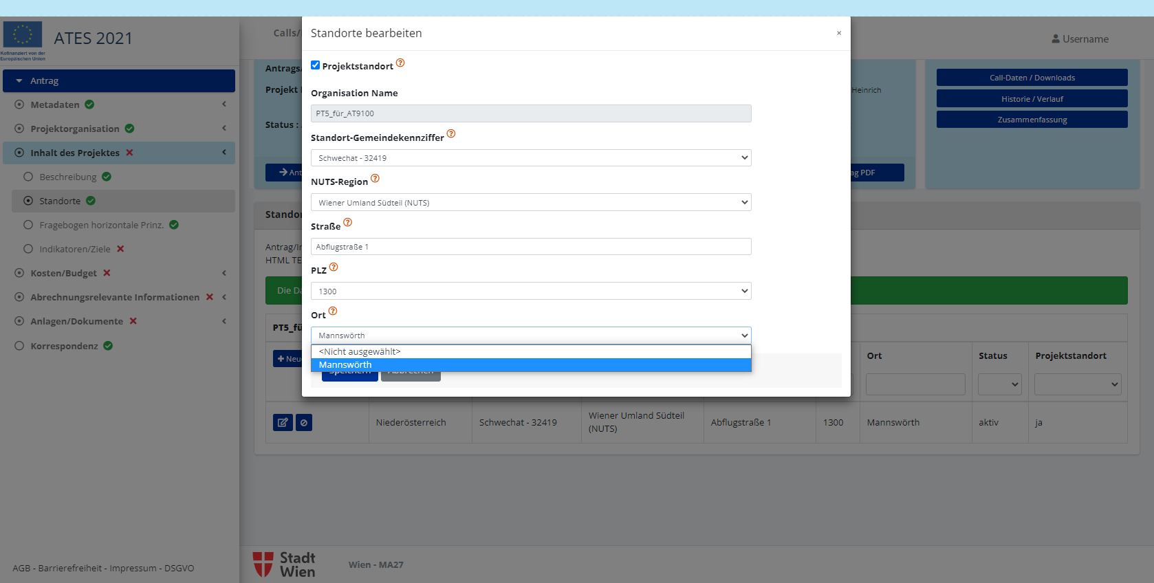 Daten Projektpartner (für Nicht-Magistratsprojekte) und das Beiblatt zum Projektantrag -