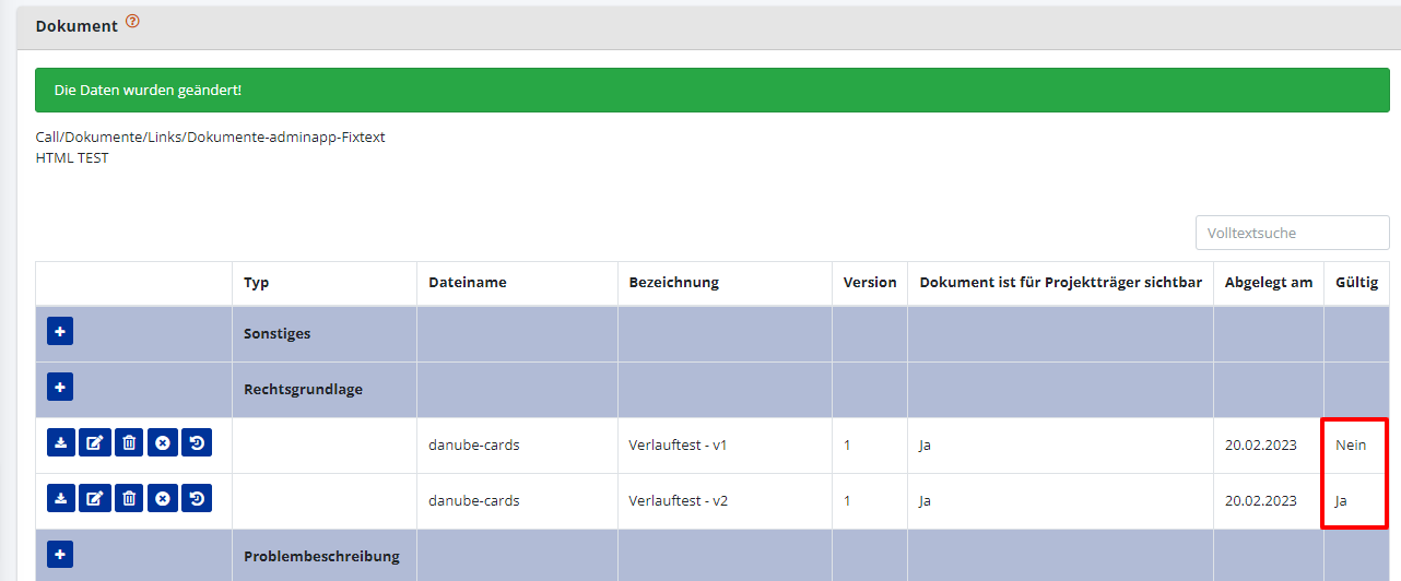 - Dokumente sichtbar/unsichtbar für Projektträger